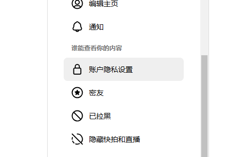 在设置页面菜单中,找到并点击“账户隐私设置“。