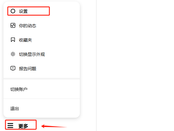 登录后,点击左侧菜单栏最下面的“更多”选项,点击“设置”图标。这个图标通常是一个小齿轮。